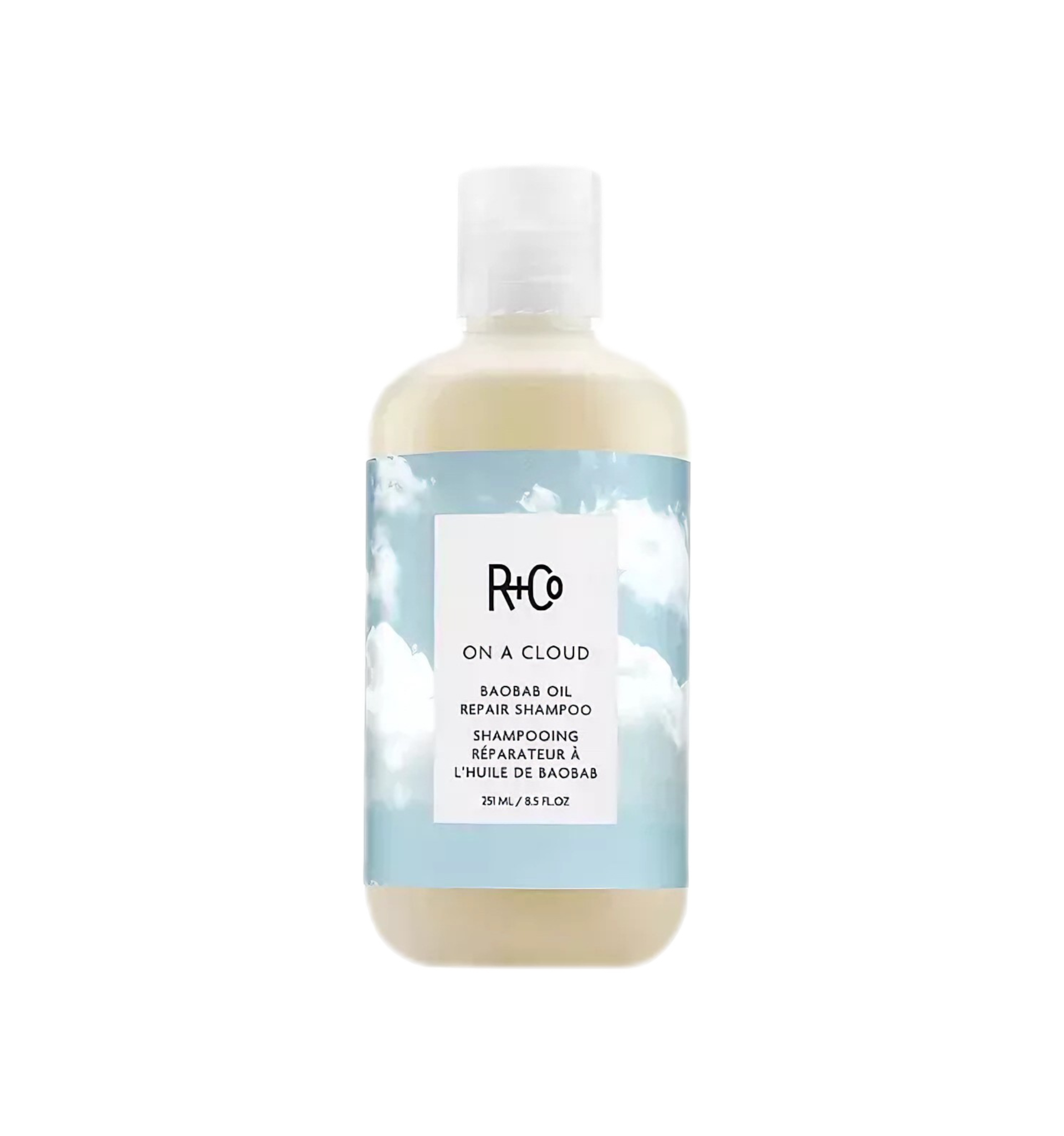 ON A CLOUD Baobab Oil Repair Shampoo — это роскошный ухаживающий шампунь с инновационной текстурой «масло-в-пене», созданный для бережного очищения и интенсивного восстановления сильно поврежденных волос. Уникальная формула на основе масла баобаба и растительных протеинов воздействует на структуру волоса изнутри, укрепляя кератиновые связи и заполняя пористые участки.